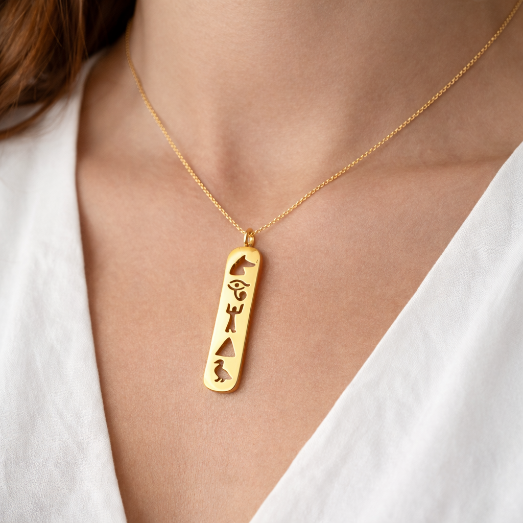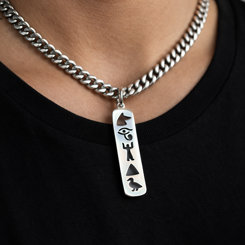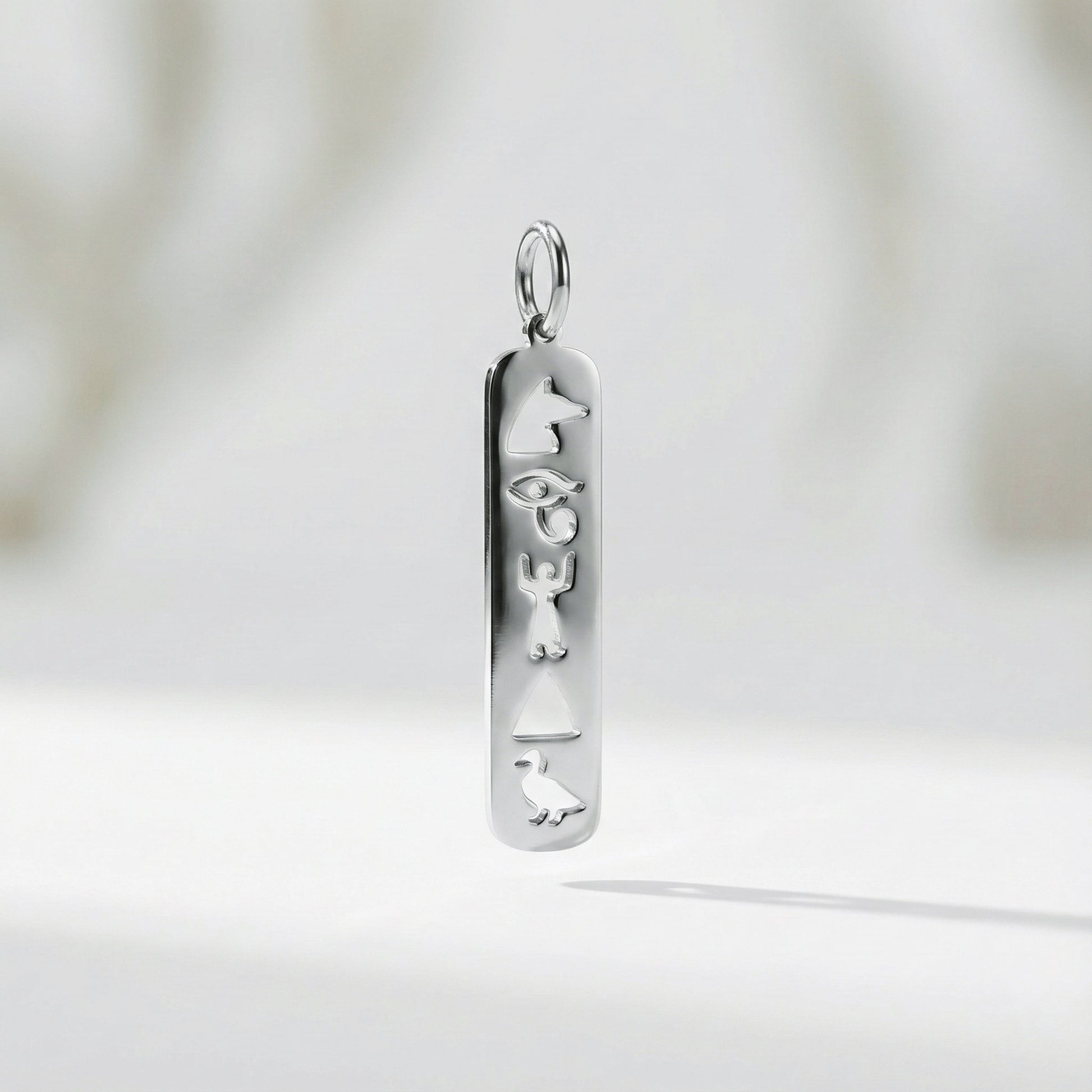 Il ciondolo Anubi unisce l'estetica minimalista alla profondità spirituale dei geroglifici egizi.