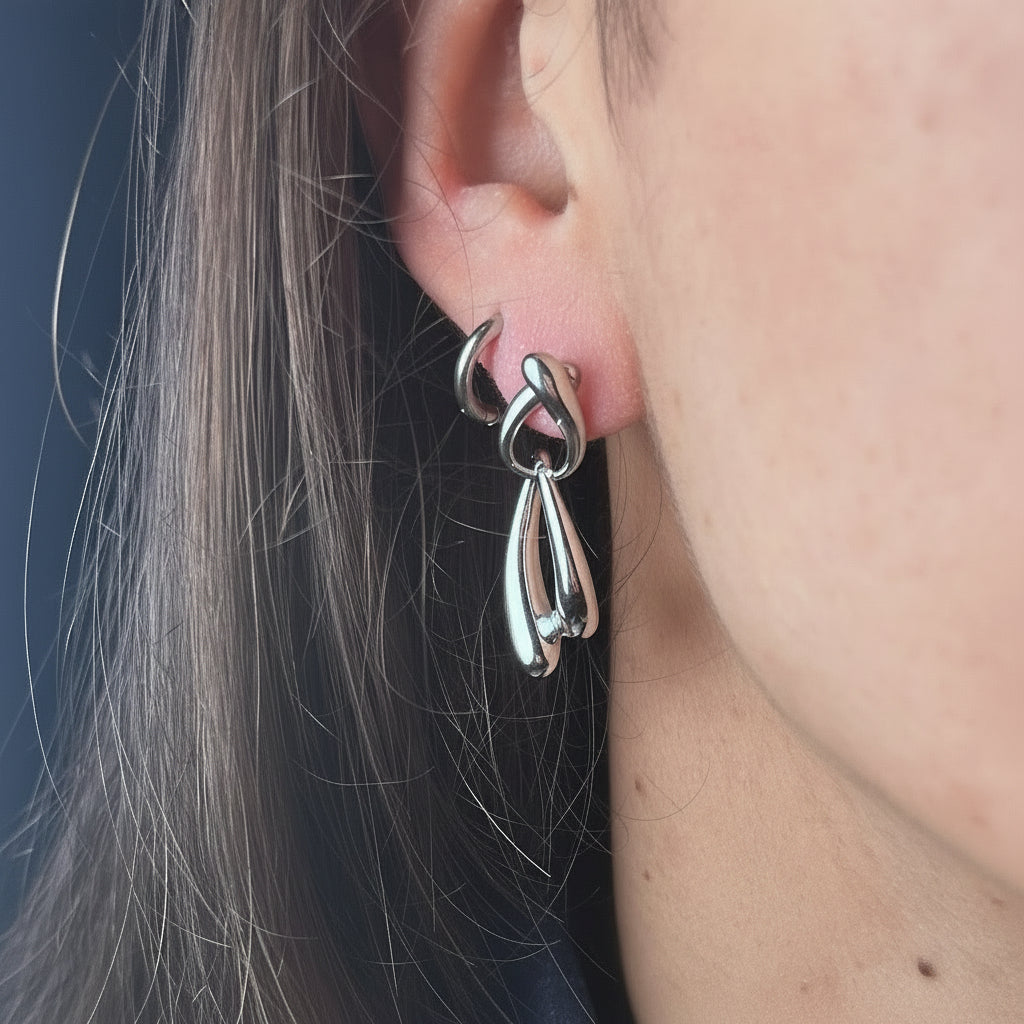 Tutto cambia, evolve, si trasforma, ecco l'ispirazione per questo modello intrecciato su se stesso con due ovali fluidi aperti di circa 4cm.