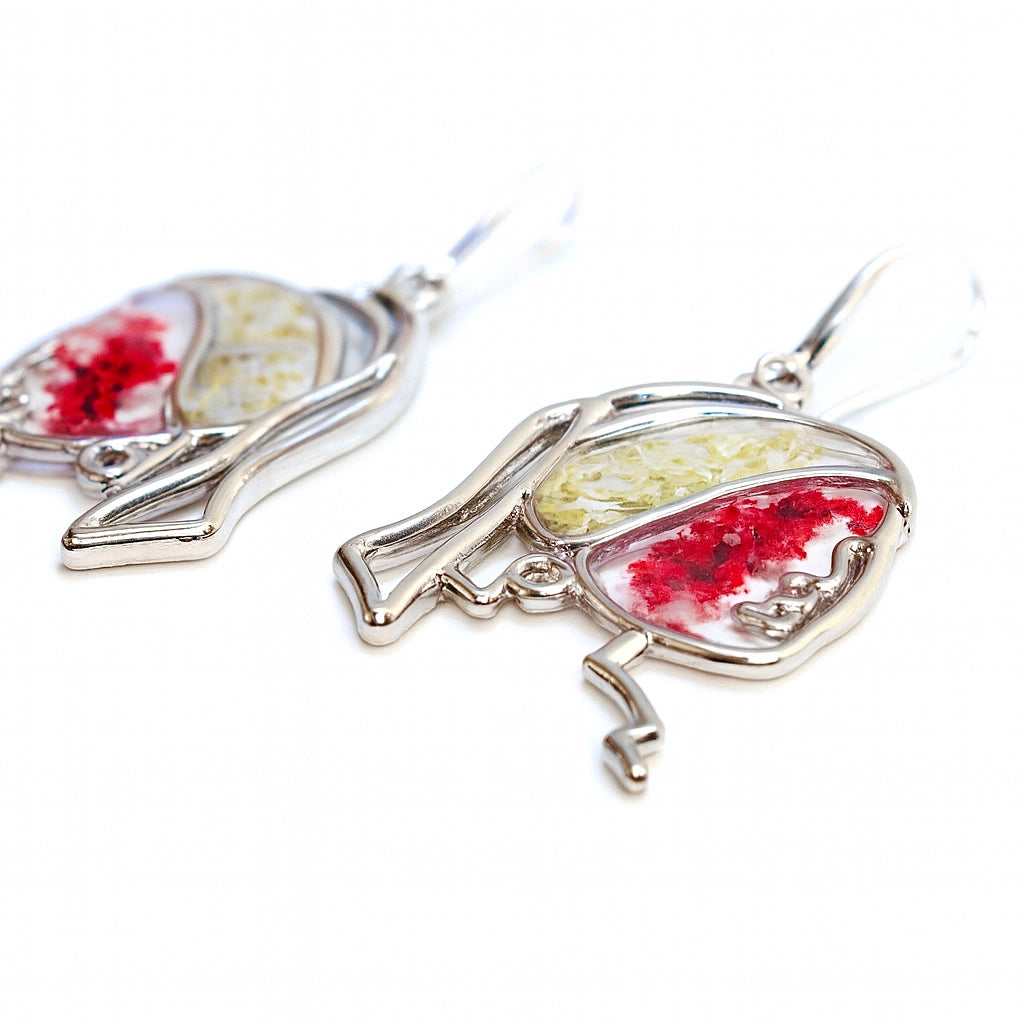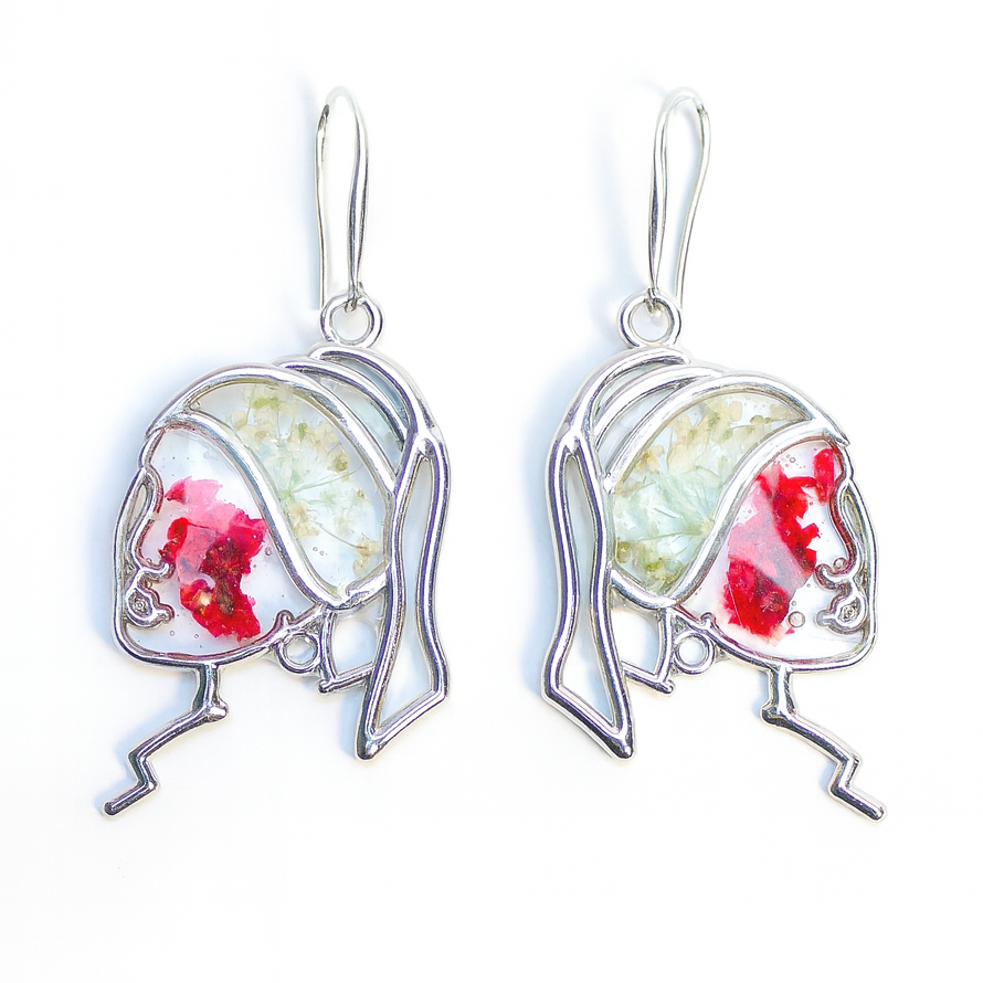 Questo orecchino ispirato a un famoso dipinto d'autore, ricorda la bellezza tramite la figura della donna e l'utilizzo di fiori veri cristallizzati al suo interno con la resina. Resistenti e luminosi, donano un tocco di originalità grazie alla forma del volto e di delicatezza con dei colori perfettamente abbinati tra loro.